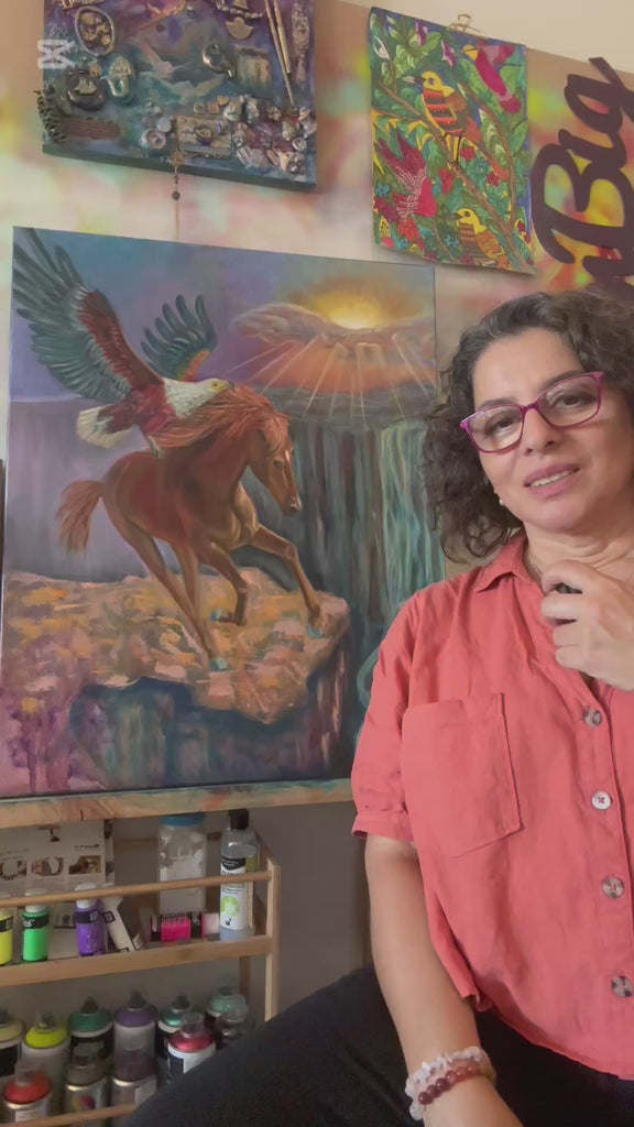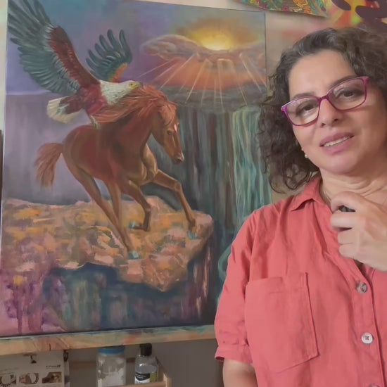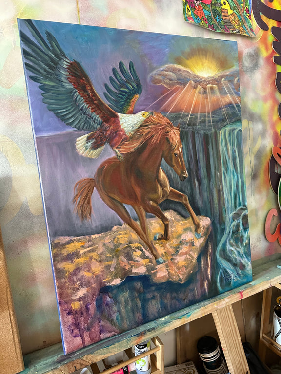 "I took a leap of faith. The steadiness of the horse grounds the eagle and the horse is elevated by the soaring eagle. Together they create a magical union like a vision of a Pegasus, wild and free.